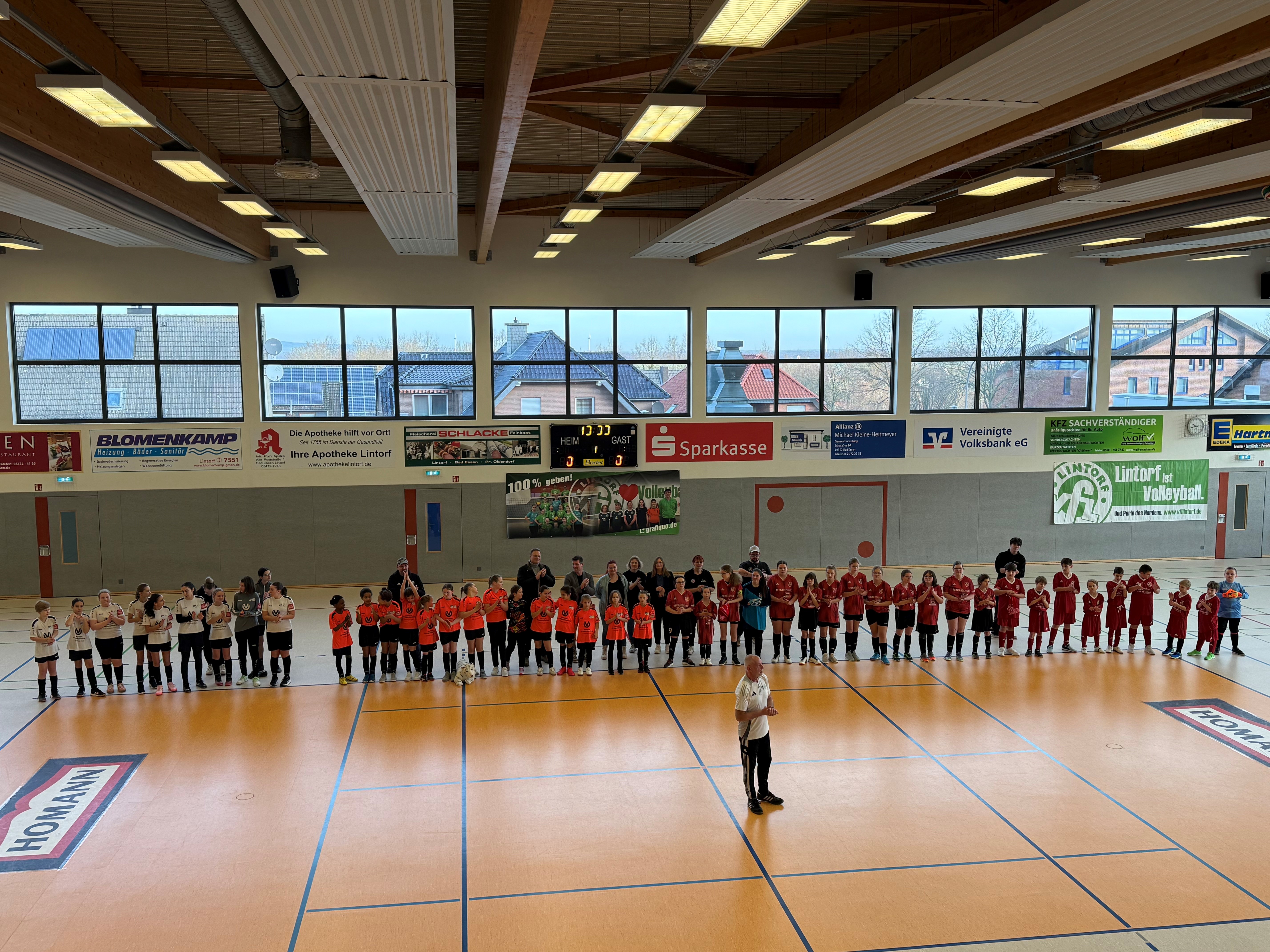 Vor voller Tribüne in der Sportahlle Lintorf fand am 17.01.2026 erstmals ein Integrations- und Mädchentag der JSG Wimmer/Lintorf statt. Mehr als 40 Mädchen und Jungen der JSG und des SuS Buer zeigten bei Freundschaftsspielen mit viel Einsatz und Begeisterung ihr fußballerisches Können.